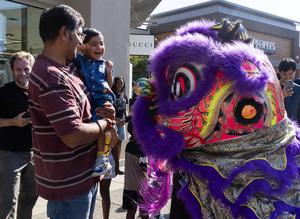 (251005) -- TORONTO, 5 octubre, 2025 (Xinhua) -- Imagen del 4 de octubre de 2025 de personas observando una presentación de la danza del león durante el Festival del Medio Otoño en un supermercado, en Toronto, Canadá. El Festival del Medio Otoño chino se celebra este año el 6 de octubre. (Xinhua/Zou Zheng) (oa) (ah)