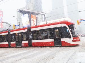 (251227) -- TORONTO, 27 diciembre, 2025 (Xinhua) -- Imagen del 26 de diciembre de 2025 de un tranvía circulando durante un día nevado, en Toronto, Canadá. (Xinhua/Zou Zheng) (oa) (da)