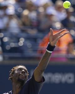 (250728) -- TORONTO, 28 julio, 2025 (Xinhua) -- Imagen del 27 de julio de 2025 de Gael Monfils, de Francia, sirviendo la pelota durante la primera ronda del partido de individuales masculinos entre Gael Monfils, de Francia, y Tomás Barrios Vera, de Chile, en el torneo de tenis Abierto National Bank 2025, en Toronto, Canadá. (Xinhua/Zou Zheng) (oa) (ah) (vf)