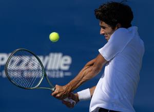 (250729) -- TORONTO, 29 julio, 2025 (Xinhua) -- Imagen del 27 de julio de 2025 de Pierre-Hugues Herbert, de Francia, devolviendo la pelota durante la primera ronda del partido de individuales masculinos entre Pierre-Hugues Herbert, de Francia, y Tomás Martín Etcheverry, de Argentina, en el torneo de tenis Abierto National Bank 2025, en Toronto, Canadá. (Xinhua/Zou Zheng) (oa) (ah)