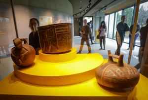 (260319) -- VANCOUVER, 19 marzo, 2026 (Xinhua) -- Imagen del 18 de marzo de 2026 de personas observando artefactos andinos antiguos durante la vista previa de la exposición "Tupananchiskama: Cosmovisión Andina Antigua" en el Museo de Antropología, en Vancouver, Columbia Británica, Canadá. La exposición explora las antiguas culturas andinas a través de casi 100 objetos elaborados con cerámica, textiles, hueso, concha y madera. (Xinhua/Liang Sen) (da) (ra) (ce)