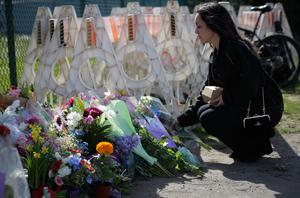 (250428) -- VANCOUVER, 28 abril, 2025 (Xinhua) -- Imagen del 27 de abril de 2025 de una mujer colocando flores cerca del sitio de un atropello masivo, en Vancouver, Columbia Británica, Canadá. Se ha confirmado la muerte de 11 personas después de que un conductor arremetiera contra la multitud en un festival callejero la noche del sábado en Vancouver, Canadá, informó el domingo la Policía local. (Xinhua/Liang Sen) (rtg) (ah) (vf)