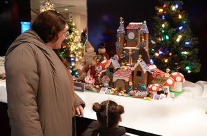 (251130) -- VANCOUVER, 30 noviembre, 2025 (Xinhua) -- Imagen del 29 de noviembre de 2025 de personas observando una creación de casa de jengibre durante el evento anual "Callejón de Jengibre", en Vancouver, Columbia Británica, Canadá. El evento de exhibición de casas de jengibre con más trayectoria en Canadá regresó por su 33 edición, presentando más de 30 casas de jengibre e invitando al público a votar por sus creaciones favoritas elaboradas por panaderos profesionales, artistas culinarios y estudiantes de escuelas de cocina. (Xinhua/Liang Sen) (oa) (da)