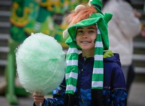 (260316) -- VANCOUVER, 16 marzo, 2026 (Xinhua) -- Imagen del 15 de marzo de 2026 de un niño portando un traje festivo mientras disfruta de un algodón de azúcar durante el evento del Día Familiar del CelticFest, en Vancouver, Columbia Británica, Canadá. El CelticFest anual reúne a la comunidad local en celebración de la cultura celta, incluyendo música celta en vivo, presentaciones de danza irlandesa y actividades familiares. (Xinhua/Liang Sen) (rtg) (ah) (vf)