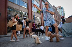 (250825) -- VANCOUVER, 25 agosto de 2025 (Xinhua) -- Imagen del 24 de agosto de 2025 de personas paseando a sus perros por una calle durante el evento "Pet-A-Palooza", en Vancouver, Columbia Británica, Canadá. "Pet-A-Palooza", también conocido como el Día del Perro, es una celebración anual de verano para los cachorros locales y sus dueños. El evento ofreció una variedad de actividades y entretenimiento relacionados con los perros, atrayendo a miles de dueños de perros y sus peludos compañeros. (Xinhua/Liang Sen) (oa) (ah) (vf)