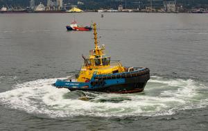 (250928) -- VANCOUVER, 28 septiembre, 2025 (Xinhua) -- Imagen del 27 de septiembre de 2025 de un remolcador del puerto de Vancouver realizando giros a alta velocidad durante una demostración marítima frente al Canada Place en el Día del Puerto, en Vancouver, Columbia Británica, Canadá. El evento anual contó con exhibiciones marítimas, demostraciones marinas, exposiciones comunitarias y actividades familiares para mostrar las operaciones portuarias de la ciudad. (Xinhua/Liang Sen) (oa) (ah)