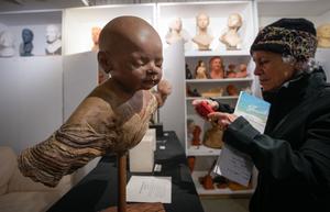 (251123) -- VANCOUVER, 23 noviembre, 2025 (Xinhua) -- Imagen del 22 de noviembre de 2025 de una mujer observando esculturas exhibidas en el interior de un estudio de un artista durante el Eastside Culture Crawl, en Vancouver, Columbia Británica, Canadá. El Eastside Culture Crawl es un festival anual de artes visuales, diseño y artesanías. Este año, el evento de cuatro días presenta más de 500 artistas abriendo sus estudios al público a lo largo de más de 80 edificios en la ciudad. (Xinhua/Liang Sen) (rtg) (ah)