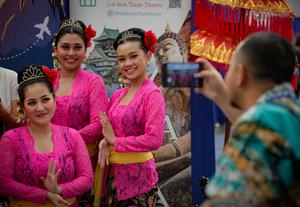 (250921) -- VANCOUVER, 21 septiembre, 2025 (Xinhua) -- Imagen del 20 de septiembre de 2025 de un visitante tomando fotografías de bailarinas durante la Exposición Internacional de Viajes de Vancouver, en Vancouver, Columbia Británica, Canadá. El evento anual se celebró el sábado en el Centro de Convenciones de Vancouver, con la participación de unos 200 expositores que presentaron ideas de viajes y destinos de todo el mundo. (Xinhua/Liang Sen) (oa) (ah)