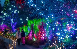 (251129) -- VANCOUVER, 29 noviembre, 2025 (Xinhua) -- Imagen del 28 de noviembre de 2025 de personas disfrutando de las instalaciones de luz en el Jardín Botánico VanDusen durante el anual Festival de Luces, en Vancouver, Columbia Británica, Canadá. El evento festivo anual comenzó aquí el viernes, con más de un millón de luces transformando el jardín en un deslumbrante espectáculo navideño. (Xinhua/Liang Sen) (jg) (da)
