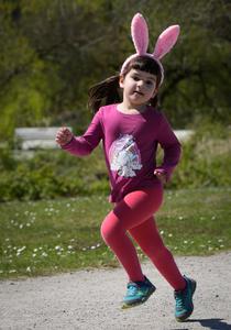 (250420) — VANCOUVER, 20 abril, 2025 (Xinhua) — Imagen del 19 de abril de 2025 de una niña participando en la Gran Carrera de Pascua en la Playa Jericho, en Vancouver, Columbia Británica, Canadá. El evento temático atrae a cientos de corredores disfrazados de conejos para celebrar la Pascua, que este año cae el 20 de abril. (Xinhua/Liang Sen) (oa) (da)