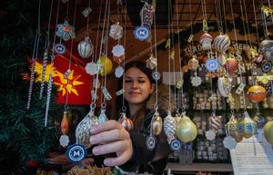(251115) -- VANCOUVER, 15 noviembre, 2025 (Xinhua) -- Imagen del 14 de noviembre de 2025 de una vendedora mostrando adornos en una cabaña de madera en el Mercado Navideño de Vancouver, en Vancouver, Columbia Británica, Canadá. El evento festivo anual cuenta con más de 110 cabañas de madera que ofrecen diversas artesanías, comida tradicional europea, bebidas y recuerdos, junto con presentaciones en vivo. El mercado de este año abrió sus puertas aquí el jueves y estará abierto hasta el 24 de diciembre. (Xinhua/Liang Sen) (jg) (da)