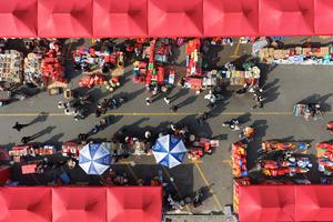 (260213) — BEIJING, 13 febrero, 2026 (Xinhua) — Vista aérea tomada con un dron el 12 de febrero de 2026 de personas comprando mercancías necesarias para las celebraciones del Año Nuevo chino en un mercado, en la ciudad de Yangzhou, en la provincia de Jiangsu, en el este de China. Los mercados de todo el país están muy activos estos días ya que las personas acuden allí para abastecerse de productos en preparación para el próximo Festival de la Primavera o el Año Nuevo chino. (Xinhua/Meng Delong) (rtg) (ra)