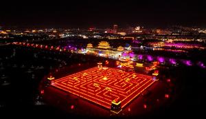 (260219) — BEIJING, 19 febrero, 2026 (Xinhua) — Vista aérea tomada con un dron el 18 de febrero de 2026 de una vista nocturna en el distrito de Yanchi, en la región autónoma hui de Ningxia, en el noroeste de China. Durante la Fiesta de la Primavera, las decoraciones de linternas a través del país crearon un alegre ambiente para la celebración. (Xinhua/Feng Kaihua) (rtg) (ra) (ce)