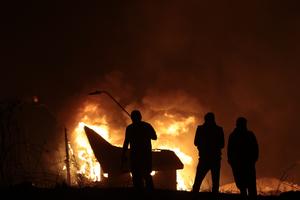 (260118) -- BIOBIO, 18 enero, 2026 (Xinhua) -- Personas reaccionan durante un incendio forestal, en Lirquén, en la comuna de Penco, en la región del Biobío, Chile, el 18 de enero de 2026. El presidente de Chile, Gabriel Boric, declaró el domingo estado de catástrofe en las regiones de Ñuble y Biobío, en la zona centro-sur del país, por los incendios que han consumido unas 10.000 hectáreas. (Xinhua/Str) (jv) (oa) (da)