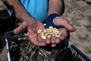 (251106) -- COQUIMBO, 6 noviembre, 2025 (Xinhua) -- Imagen del 29 de octubre 2025 del agricultor Rolando Rojas mostrando semillas de habas en la Parcela de Multiplicación de Semillas del Instituto de Investigaciones Agropecuarias de Chile, en la comuna de Vicuña, en la región de Coquimbo, Chile. La sequía estructural que azota en el norte chileno ha cambiado la forma de hacer agricultura. Sin embargo, un grupo de resilientes agricultores se han transformado en los "guardianes de las semillas", al cuidar los granos para proteger el ecosistema y los sabores atávicos de los eclécticos valles del país sudamericano. (Xinhua/Jorge Villegas) (jv) (jg) (ah) (da)
