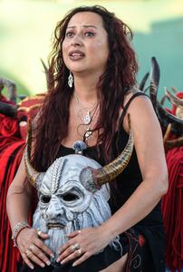 (250726) -- LA TIRANA, 26 julio, 2025 (Xinhua) -- Imagen del 15 de julio de 2025 de la artesana María Rivera hablando durante una entrevista con la Agencia de Noticias Xinhua, en el poblado de La Tirana, en la comuna de Pozo Almonte, en la región de Tarapacá, Chile. Cada vez que identifica una de sus caretas en los bailes, María Rivera hincha su pecho de orgullo, porque la artesana es una de las cientos de personas anónimas que le dan vida a la Fiesta de La Tirana, la celebración religiosa más importante del país sudamericano. (Xinhua/Jorge Villegas) (jv) (rtg) (da)
