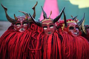 (250726) — LA TIRANA, 26 julio, 2025 (Xinhua) — Imagen del 15 de julio de 2025 de caretas elaboradas por la artesana María Rivera colocadas en una mesa durante una entrevista con la Agencia de Noticias Xinhua, en el poblado de La Tirana, en la comuna de Pozo Almonte, en la región de Tarapacá, Chile. Cada vez que identifica una de sus caretas en los bailes, María Rivera hincha su pecho de orgullo, porque la artesana es una de las cientos de personas anónimas que le dan vida a la Fiesta de La Tirana, la celebración religiosa más importante del país sudamericano. (Xinhua/Jorge Villegas) (jv) (rtg) (da)
