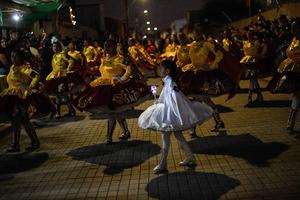 (250724) — LA TIRANA, 24 julio, 2025 (Xinhua) — Imagen del 15 de julio de 2025 de bailarinas participando en la Fiesta de La Tirana, en el poblado de La Tirana, en la comuna de Pozo Almonte, en la región de Tarapacá, Chile. El poblado chileno de La Tirana, un oasis en el desierto de Atacama, en la región norte de Chile, durante todo el año no supera los 1.000 habitantes, pero en julio llega a rebasar las 200.000 personas entre visitantes y vecinos que se juntan para bailar, llorar o pedir mandas en la Fiesta de La Tirana, la celebración religiosa más importante del país sudamericano. (Xinhua/Jorge Villegas) (jv) (ah) (ra) (ce)