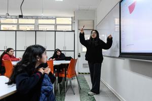(250627) -- SAN NICOLAS, 27 junio, 2025 (Xinhua) -- Imagen del 13 de junio de 2025 de la docente de idioma chino, Qu Shuchang (d), impartiendo una clase en el Liceo Bicentenario de Excelencia Polivalente San Nicolás, en la comuna de San Nicolás, en la provincia de Punilla, en la región de Ñuble, Chile. Desde 2010 y hasta la fecha, en el Liceo Bicentenario de Excelencia Polivalente San Nicolás unos 400 estudiantes reciben cada año cursos de idioma del Departamento de Chino Mandarín, accediendo así a un futuro de oportunidades ligado al país asiático. (Xinhua/Jorge Villegas) (jv) (oa) (ra) (ce)