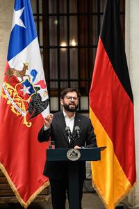 (250305) — SANTIAGO, 5 marzo, 2025 (Xinhua) — El presidente chileno, Gabriel Boric, realiza una declaración conjunta con el presidente alemán, Frank-Walter Steinmeier, en el Palacio de Gobierno, en la ciudad de Santiago, capital de Chile, el 5 de marzo de 2025. Boric recibió el miércoles a su par de Alemania, Frank-Walter Steinmeier, en una visita oficial al país sudamericano, en la que los dos reafirmaron su compromiso con el multilateralismo. (Xinhua/Jorge Villegas) (jv) (jg) (ah) (vf)