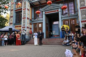 (260131) -- SANTIAGO, 31 enero, 2026 (Xinhua) -- Imagen del 30 de enero de 2026 del embajador chino en Chile, Niu Qingbao (c), pronunciando un discurso durante las celebraciones del Año Nuevo chino del Caballo en el Museo Artequin, en Santiago, capital de Chile. La capital chilena festejó el viernes el Año Nuevo chino del Caballo con un aclamado desfile de "cosplays" inspirados en los videojuegos chinos y el género Xianxia, centrado en la fantasía, el taoísmo, la inmortalidad y las artes marciales. (Xinhua/Jorge Villegas) (jv) (oa) (da)
