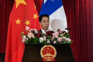 (250124) -- SANTIAGO, 24 enero, 2025 (Xinhua) -- Imagen del 23 de enero de 2025 del embajador chino en Chile, Niu Qingbao, pronunciando un discurso durante una recepción para celebrar el Año Nuevo chino, en Santiago, capital de Chile. Se celebró el jueves el Año Nuevo chino o la Fiesta de la Primavera en una recepción organizada por la Embajada de la República Popular China en Chile, con invitados del Gobierno, el Parlamento e instituciones educativas, para darle la bienvenida al año de la serpiente. (Xinhua/Jorge Villegas) (jv) (jg) (da) (vf)