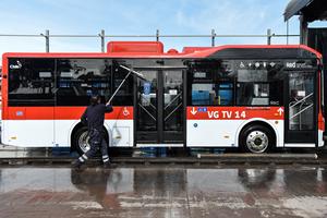 (250807) -- SANTIAGO, 7 agosto, 2025 (Xinhua) -- Imagen del 4 de agosto de 2025 de un trabajador limpiando un autobús eléctrico de la marca china, King Long, en la casa matriz de la empresa chilena Vivipra, en la comuna de San Bernardo, en Santiago, capital de Chile. Tienen los mismos altos estándares de los cientos de autobuses que circulan por Santiago de Chile, pero van rumbo a la desértica localidad de Copiapó (norte), que acrecentará su condición de oasis al transformarse en la primera ciudad de Sudamérica en contar con una flota de transporte público 100 por ciento eléctrico, todos de origen chino. (Xinhua/Jorge Villegas) (jv) (rtg) (ra)