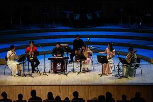 (250927) — SANTIAGO, 27 septiembre, 2025 (Xinhua) — Imagen del 25 de septiembre de 2025 de artistas realizando una presentación en el concierto «Canción de una música de pipa» en la Gran Sala Sinfónica Nacional, en el Centro de Extensión Artística y Cultural de la Universidad de Chile, en Santiago, capital de Chile. La pipa, instrumento musical chino similar al laúd occidental, fue la gran protagonista del concierto «Canción de una música de pipa», un viaje musical por el país asiático que se realizó en la recién inaugurada Gran Sala Sinfónica Nacional de Chile. (Xinhua/Jorge Villegas) (jv) (oa) (ra) (vf)