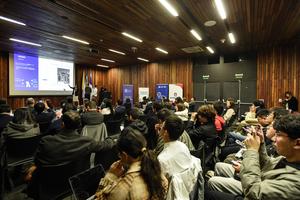(250823) -- SANTIAGO, 23 agosto, 2025 (Xinhua) -- Imagen del 22 de agosto de 2025 de personas asistiendo a la final del concurso "Desafío de juventud China - LAC para aliviar pobreza 2025" llevada a cabo en la Pontificia Universidad Católica de Chile, en Santiago, capital de Chile. Estudiantes universitarios latinoamericanos y chinos se reunieron esta semana en Chile en una competencia de proyectos innovadores para enfrentar el desafío de la pobreza multidimensional en esta región, en el marco de un programa de intercambio entre jóvenes encabezado por universidades de ambas partes. (Xinhua/Jorge Villegas) (jv) (jg) (da)