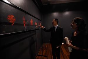 (251003) -- SANTIAGO, 3 octubre, 2025 (Xinhua) -- Imagen del 2 de octubre de 2025 del embajador de China en Chile, Niu Qingbao (i), asistiendo a la inauguración de la exposición "Hecho en China", en Santiago, capital de Chile. Artesanías chinas que estuvieron guardadas por medio siglo salieron a la luz gracias a la exposición "Hecho en China" del Museo de Arte Popular Americano Tomás Lago de Chile, una muestra que pone en discusión el imaginario chino en el país sudamericano a través de objetos cotidianos. (Xinhua/Jorge Villegas) (jv) (oa) (ra) (ce)