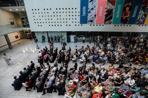 (241220) -- SANTIAGO, 20 diciembre, 2024 (Xinhua) -- Imagen del 19 de diciembre de 2024 de personas asistiendo a la inauguración de la exposición "Centenario José Venturelli. Humanismo y compromiso social", en el Centro Cultural La Moneda, en Santiago, capital de Chile. Más de 470 piezas presenta la exposición "Centenario José Venturelli. Humanismo y compromiso social" que celebra a este pintor chileno cuyo acervo artístico catalogado como "realismo integrador" conectó a Chile con Cuba, Suiza y China a través del arte y el humanismo. (Xinhua/Jorge Villegas) (jv) (jg) (ra) (ce)