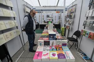 (250406) -- SANTIAGO, 6 abril, 2025 (Xinhua) -- Imagen del 5 de abril de 2025 de un hombre visitando un estand durante la Feria Internacional del Libro de Ciencias Sociales (FILCS), en la municipalidad de Recoleta, en Santiago, capital de Chile. La sexta FILCS fue inaugurada el sábado en Santiago de Chile con China como país invitado. (Xinhua/Jorge Villegas) (jv) (oa) (da)