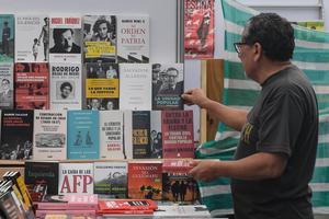 (250406) -- SANTIAGO, 6 abril, 2025 (Xinhua) -- Imagen del 5 de abril de 2025 de un expositor acomodando libros en un estand durante la Feria Internacional del Libro de Ciencias Sociales (FILCS), en la municipalidad de Recoleta, en Santiago, capital de Chile. La sexta FILCS fue inaugurada el sábado en Santiago de Chile con China como país invitado. (Xinhua/Jorge Villegas) (jv) (oa) (da)