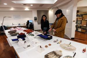 (250529) -- SANTIAGO, 29 mayo, 2025 (Xinhua) -- Imagen del 27 de mayo de 2025 de la encargada de Colecciones del Museo de Arte Popular Americano (MAPA) Tomás Lago de Chile, Paula Cabrera (i), realizando una exposición de la colección de objetos chinos exhibidos en el MAPA, en Santiago, capital de Chile. El MAPA se ubica en la actualidad en la plataforma cultural del Campus Juan Gómez Millas de la Universidad de Chile, en la capital, donde trabajan la conservación, restauración e investigación de las 8.000 piezas que poseen, de las cuales unas 500 son chinas. (Xinhua/Jorge Villegas) (jv) (jg) (ah) (ce)