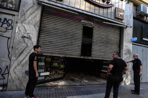 (250225) -- SANTIAGO, 25 febrero, 2025 (Xinhua) -- Trabajadores cierran una tienda de licores durante un corte masivo de energía, en Santiago, capital de Chile, el 25 de febrero de 2025. Un corte masivo de energía afecta el martes a Chile, de norte a sur, debido a una falla en el sistema eléctrico del país sudamericano por causas desconocidas, informó el Coordinador Eléctrico Nacional, que opera entre Arica (norte) y Chiloé (sur). (Xinhua/Jorge Villegas) (jv) (jg) (ra) (vf)