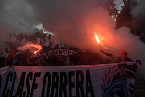 (250501) -- SANTIAGO, 1 mayo, 2025 (Xinhua) -- Manifestantes participan durante la marcha denominada "1 de Mayo Clasista" en el marco de la conmemoración del Día Internacional del Trabajo, en Santiago, capital de Chile, el 1 de mayo de 2025. (Xinhua/Jorge Villegas) (jv) (da) (ra) (ce)