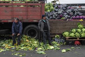 (250611) -- SANTIAGO, 11 junio, 2025 (Xinhua) -- Vendedores esperan por clientes en un puesto de verduras en el mercado La Vega Central, en Santiago, capital de Chile, el 11 de junio de 2025. Analistas del mercado chileno elevaron a 2,2 por ciento su proyección de crecimiento de la economía del país sudamericano este año, tras estimar un 2 por ciento el mes anterior, informó el martes el Banco Central de Chile. (Xinhua/Jorge Villegas) (jv) (jg) (da) (ce)