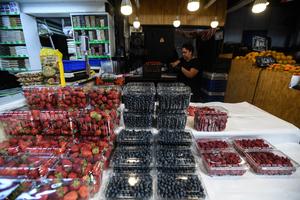 (250404) — SANTIAGO, 4 abril, 2025 (Xinhua) — Imagen del 4 de abril de 2025 de cajas de frutas exhibidas para su venta en el mercado La Vega Central, en Santiago, capital de Chile. La implementación de aranceles del 10 por ciento sobre los productos que entren a Estados Unidos de origen chileno generó preocupación en diferentes gremios del país sudamericano que advierten sobre la afectación de la competitividad de diversas exportaciones. (Xinhua/Jorge Villegas) (jv) (rtg) (ra) (ce)