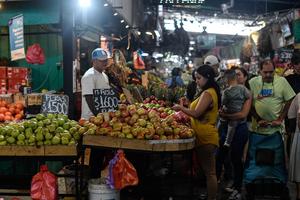 (250404) -- SANTIAGO, 4 abril, 2025 (Xinhua) -- Una mujer compra manzanas en el mercado La Vega Central, en Santiago, capital de Chile, el 4 de abril de 2025. La implementación de aranceles del 10 por ciento sobre los productos que entren a Estados Unidos de origen chileno generó preocupación en diferentes gremios del país sudamericano que advierten sobre la afectación de la competitividad de diversas exportaciones. (Xinhua/Jorge Villegas) (jv) (rtg) (ra) (ce)