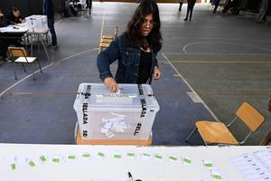 (251214) -- SANTIAGO, 14 diciembre, 2025 (Xinhua) -- Una persona emite su voto en un centro electoral durante la segunda vuelta de la elección presidencial, en la ciudad de Santiago, capital de Chile, el 14 de diciembre de 2025. Chile arrancó el domingo la segunda vuelta presidencial, la primera con voto obligatorio en el país, en la que 15,77 millones de personas elegirán entre la izquierdista Jeannette Jara y el ultraderechista José Antonio Kast para reemplazar al actual mandatario, Gabriel Boric. (Xinhua/Jorge Villegas) (jv) (rtg) (ah)