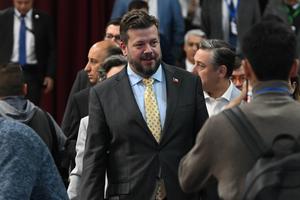 (251104) -- SANTIAGO, 4 noviembre, 2025 (Xinhua) -- El candidato a la Presidencia chilena, el diputado libertario, Johannes Kaiser (c), llega para participar en el debate presidencial chileno organizado por la Asociación de Radiodifusoras de Chile, en Santiago, capital de Chile, el 4 de noviembre 2025. La migración, derechos humanos y economía fueron los tópicos principales en el debate presidencial chileno celebrado el martes, con miras a las elecciones presidenciales del próximo 16 de noviembre. (Xinhua/Jorge Villegas) (jv) (jg) (ra) (ce)