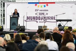 (251024) -- SANTIAGO, 24 octubre, 2025 (Xinhua) -- Imagen del 23 de octubre de 2025 de la ministra de Agricultura chilena, María Ignacia Fernández, pronunciando un discurso durante la inauguración de la 25 versión de la Expo Mundo Rural 2025, en Santiago, capital de Chile. (Xinhua/Jorge Villegas) (jv) (oa) (ra) (ce)