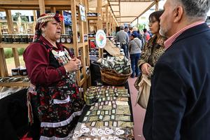 (251024) -- SANTIAGO, 24 octubre, 2025 (Xinhua) -- Imagen del 23 de octubre de 2025 de una expositora ofreciendo sus productos en un estand durante la inauguración de la 25 versión de la Expo Mundo Rural 2025, en Santiago, capital de Chile. (Xinhua/Jorge Villegas) (jv) (oa) (ra) (ce)