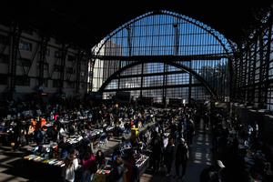 (250602) -- SANTIAGO, 2 junio, 2025 (Xinhua) -- Imagen del 31 de mayo de 2025 de personas observando libros durante "La Furia del Libro", en el Centro Cultural Estación Mapocho, en Santiago, capital de Chile. Los fríos días en Santiago de Chile fueron temperados con acaloradas conversaciones, presentaciones y miles de libros en "La Furia del Libro", el encuentro editorial independiente más grande del país sudamericano que sirvió como preámbulo para la Feria del Libro de Frankfurt 2027, donde Chile será invitado de honor. (Xinhua/Jorge Villegas) (jv) (rtg) (oa) (ce)