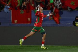 (251020) -- SANTIAGO, 20 octubre, 2025 (Xinhua) -- Imagen del 19 de octubre de 2025 de Yassir Zabiri, de Marruecos, festejando su anotación durante el partido final entre Argentina y Marruecos de la Copa Mundial Sub-20 de la FIFA Chile 2025, en Santiago, Chile. (Xinhua/Jorge Villegas) (oa) (ah) (ce)