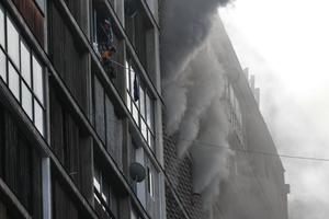 (250710) -- SANTIAGO, 10 julio, 2025 (Xinhua) -- Imagen cedida por la Agencia de Noticias de Chile AGENCIA UNO de una persona esperando para ser evacuada de un edificio durante un incendio, en Santiago, capital de Chile, el 10 de julio de 2025. Organismos chilenos de emergencia trabajan en el rescate de personas atrapadas en un edificio que se incendia en el casco histórico de la capital, Santiago, informó el jueves el Servicio Nacional de Prevención y Respuesta ante Desastres. (Xinhua/Diego Martín/Agencia UNO) (rtg) (ra) (ce)