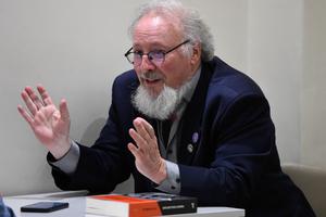 (251121) -- SANTIAGO, 21 noviembre, 2025 (Xinhua) -- Imagen del 13 de octubre de 2025 del investigador estadounidense, Peter Kornbluh, hablando durante una entrevista con la Agencia de Noticias Xinhua, en Santiago, capital de Chile. La Operación Cóndor, un sistema de coordinación represiva entre los regímenes militares del Cono Sur que persiguió y eliminó a miles de personas por motivos políticos, sigue revelando lecciones pendientes, dijo Kornbluh, 50 años después del inicio de dicha campaña de represión. (Xinhua/Jorge Villegas) (jv) (rtg) (ra) (ce)
