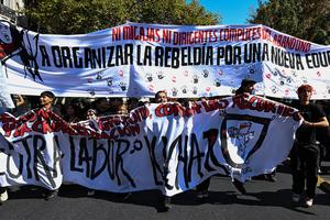 (260429) -- SANTIAGO, 29 abril, 2026 (Xinhua) -- Estudiantes participan en una manifestación, en Santiago, capital de Chile, el 29 de abril 2026. (Xinhua/Jorge Villegas) (jv) (da) (ra) (vf)