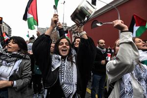 (250809) -- SANTIAGO, 9 agosto, 2025 (Xinhua) -- Personas participan en "La Marcha de Las Ollas Vacías" convocada por la Comunidad Palestina de Chile, en Santiago, capital de Chile, el 9 de agosto de 2025. (Xinhua/Jorge Villegas) (jv) (jg) (da)