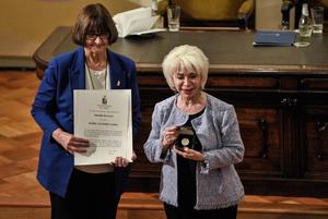 (250923) -- SANTIAGO, 23 septiembre, 2025 (Xinhua) -- La rectora de la Universidad de Chile, Rosa Devés Alessandri (i), entrega la Medalla Rectoral a la escritora, Isabel Allende (d), en el Salón de Honor de la Casa Central de la Universidad de Chile, en Santiago, capital de Chile, el 23 de septiembre de 2025. (Xinhua/Jorge Villegas) (jv) (jg) (ra) (ce)
